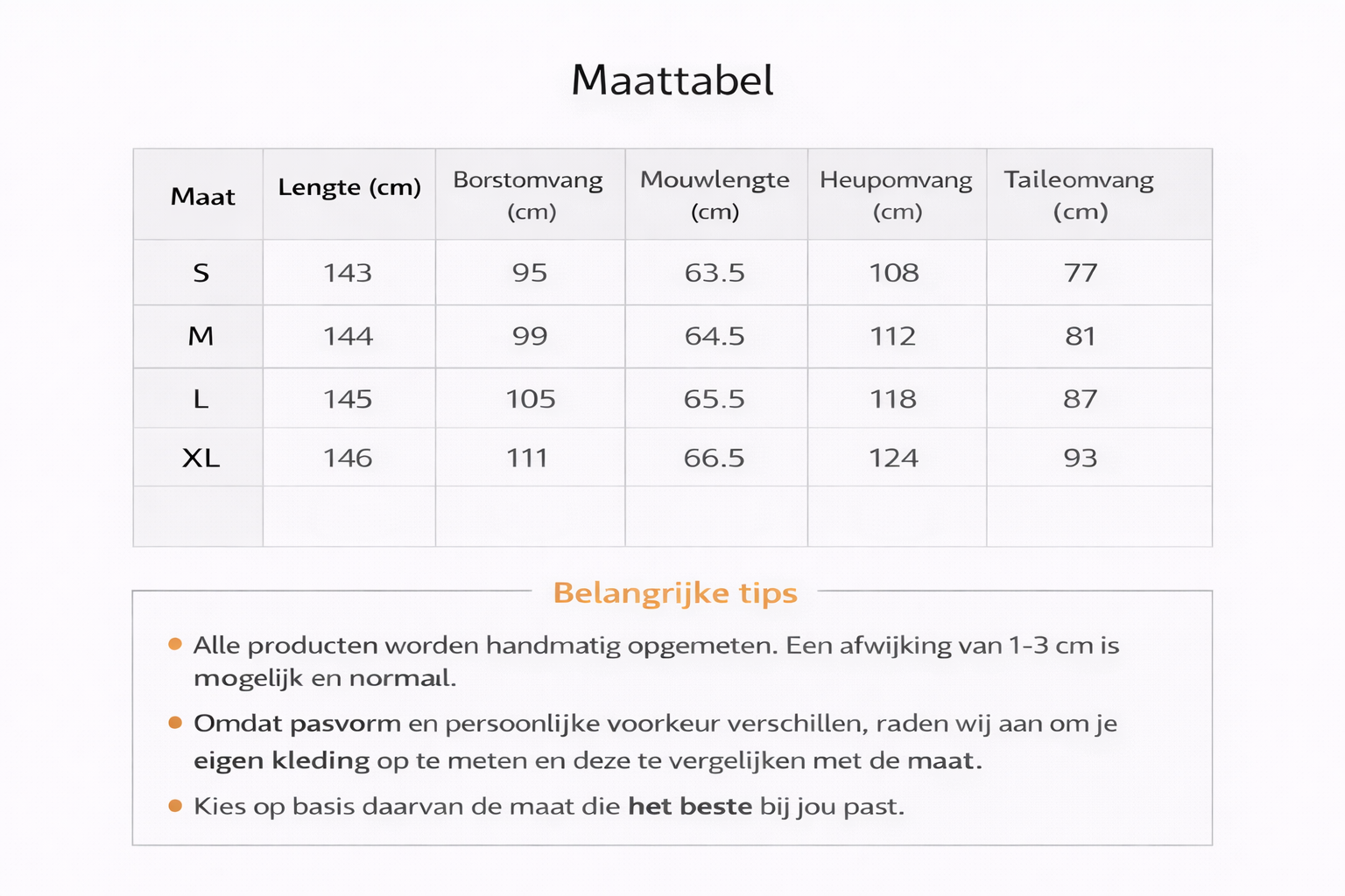 ⚠️ Kijk zeker onze maattabel na voor bestelling van de juiste maat!